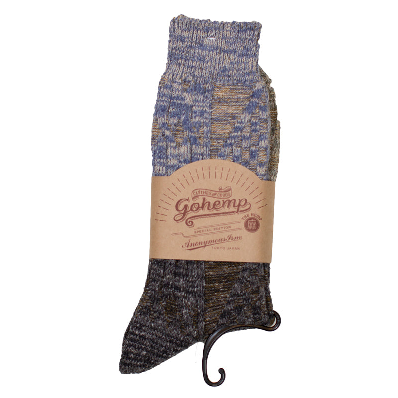 Anonymous ism - Blue/Brown Go Hemp Cable Knit Crew Socks
