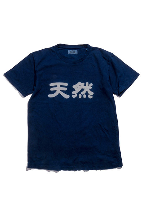 This cotton t-shirt has been indigo dyed with Japanese symbols on the front to represent Japanese heritage. Their signature use of dyeing techniques, this tee will become a mainstay in the wardrobe of indigo enthusiasts.