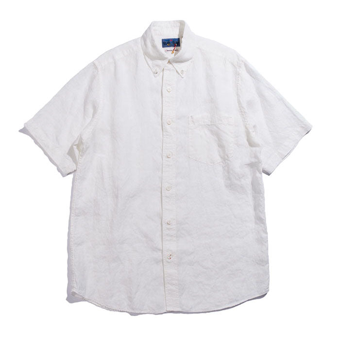Blue Blue Japan - White Linen Button Down Short Sleeve SHIRT