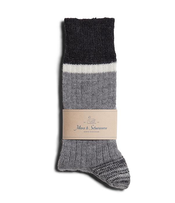 Merz B. Schwanen - Grey Melange/ Nature Striped Sport Socks
