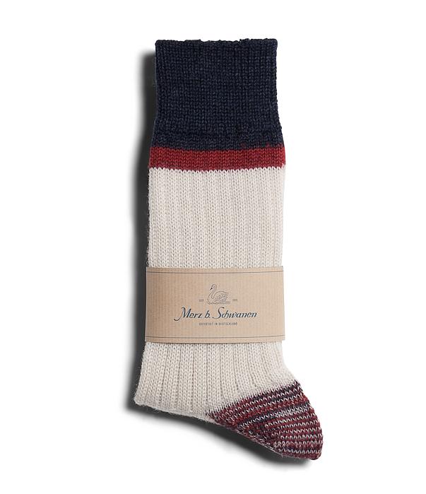 Merz B. Schwanen - Nature/Dark Red Striped Sport Socks