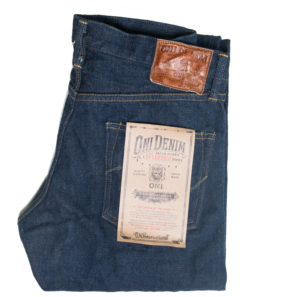 Created by ONI using a secret denim process that utilizes a low tension weave which creates a naturally slubby and neppy heavyweight denim that is easy to break in. Finished with a unique beige like colour weft this pair is sure to fade in with incredible character.