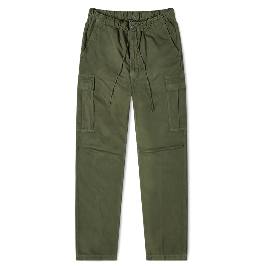 The Easy Cargo Pants from Orslow are a functional and casual cargo style pant. The 2 by 1 weave allows for a springy and flexible fabric while retaining a rugged feel. The pants are finished with raised rear patch pockets, drawstrings at the waist, and are cut in a relaxed tapered silhouette.