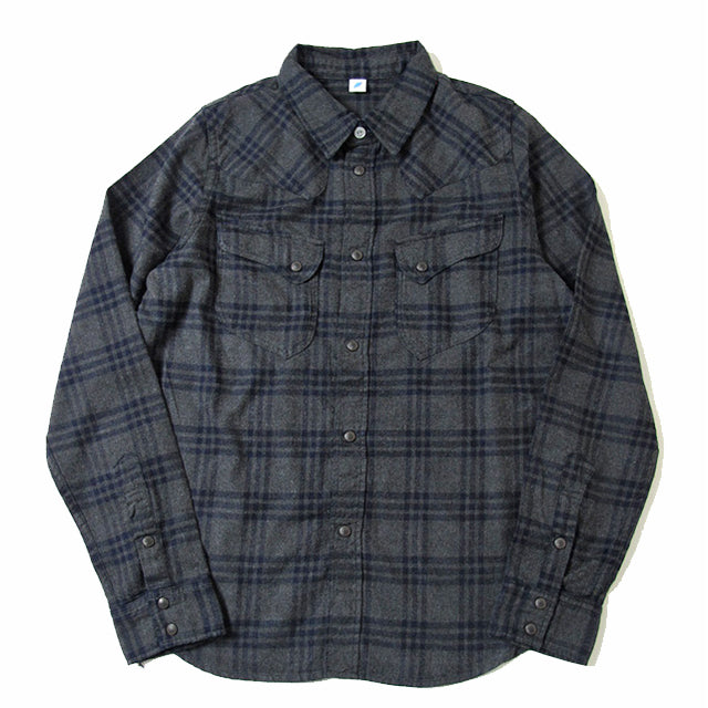 Pure Blue Japan - Grey Indigo Check Flannel Western Shirt