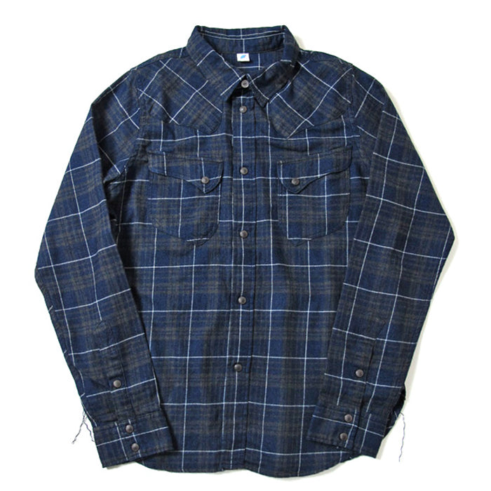 Pure Blue Japan - Navy Indigo Check Flannel Western Shirt