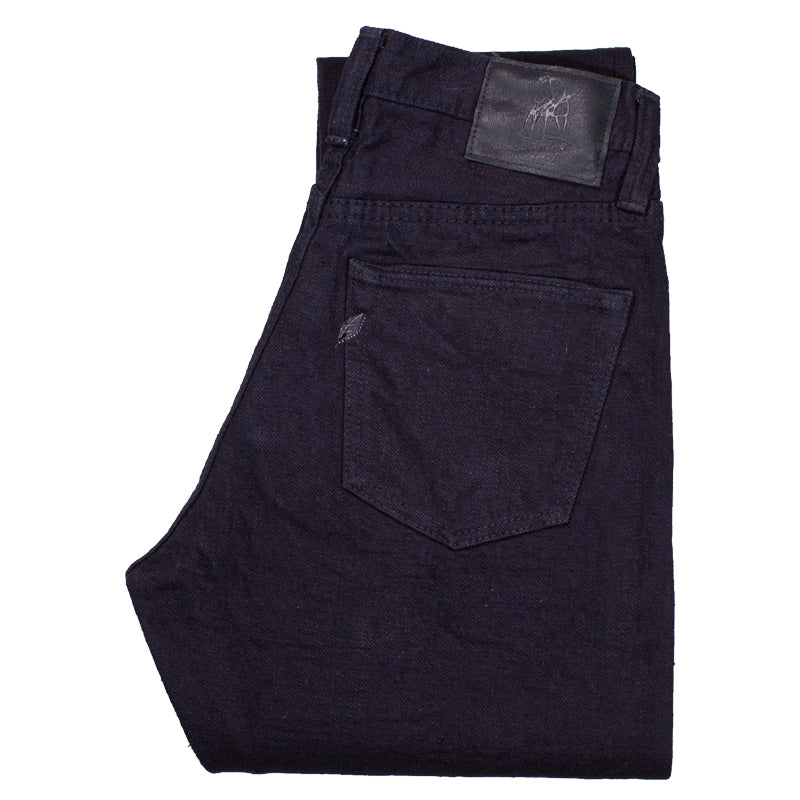 Pure Blue Japan now offers a beautiful indigo x black selvedge denim in the brand's new relaxed tapered fit. Woven slowly for an uneven and loose weave, this results in a denim that is more slubby and neppy than usual.