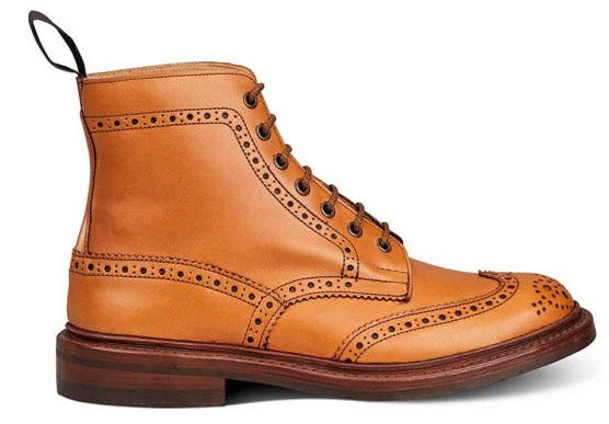 Stow is Tricker’s most iconic men’s boot. Made originally as a country boot, but now worn by men all around the world across fields and cities. The Stow Derby ankle boot is instantly recognisable for its brogue patterning synonymous to Tricker’s; however its strong, solid build and seven eyelets make it as recognisable, whilst by no means flashy. A half bellows tongue is folded and attached to the boot to provide a watertight seal, with the storm welt providing an additional waterproof seal between the shoe's upper and sole. Our classic Stow boot features leather linings and the option of either a traditional leather sole or a Dainite sole for more practicality.