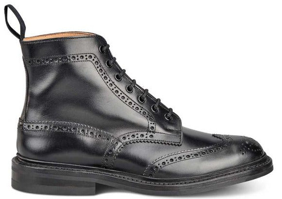 Stow is Tricker’s most iconic men’s boot. Made originally as a country boot, but now worn by men all around the world across fields and cities. The Stow Derby ankle boot is instantly recognisable for its brogue patterning synonymous to Tricker’s; however its strong, solid build and seven eyelets make it as recognisable, whilst by no means flashy. A half bellows tongue is folded and attached to the boot to provide a watertight seal, with the storm welt providing an additional waterproof seal between the shoe's upper and sole. Our classic Stow boot features leather linings and the option of either a traditional leather sole or a Dainite sole for more practicality.