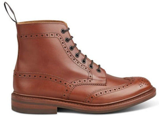 Stow is Tricker’s most iconic men’s boot. Made originally as a country boot, but now worn by men all around the world across fields and cities. The Stow Derby ankle boot is instantly recognisable for its brogue patterning synonymous to Tricker’s; however its strong, solid build and seven eyelets make it as recognisable, whilst by no means flashy. A half bellows tongue is folded and attached to the boot to provide a watertight seal, with the storm welt providing an additional waterproof seal between the shoe's upper and sole. Our classic Stow boot features leather linings and the option of either a traditional leather sole or a Dainite sole for more practicality.