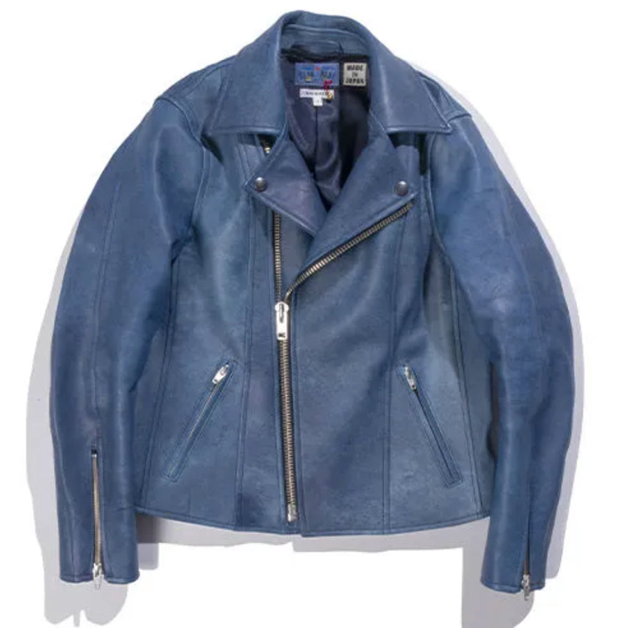 Blue Blue Japan - Natural Indigo Dyed Sheepskin Double Riders Leather Jacket