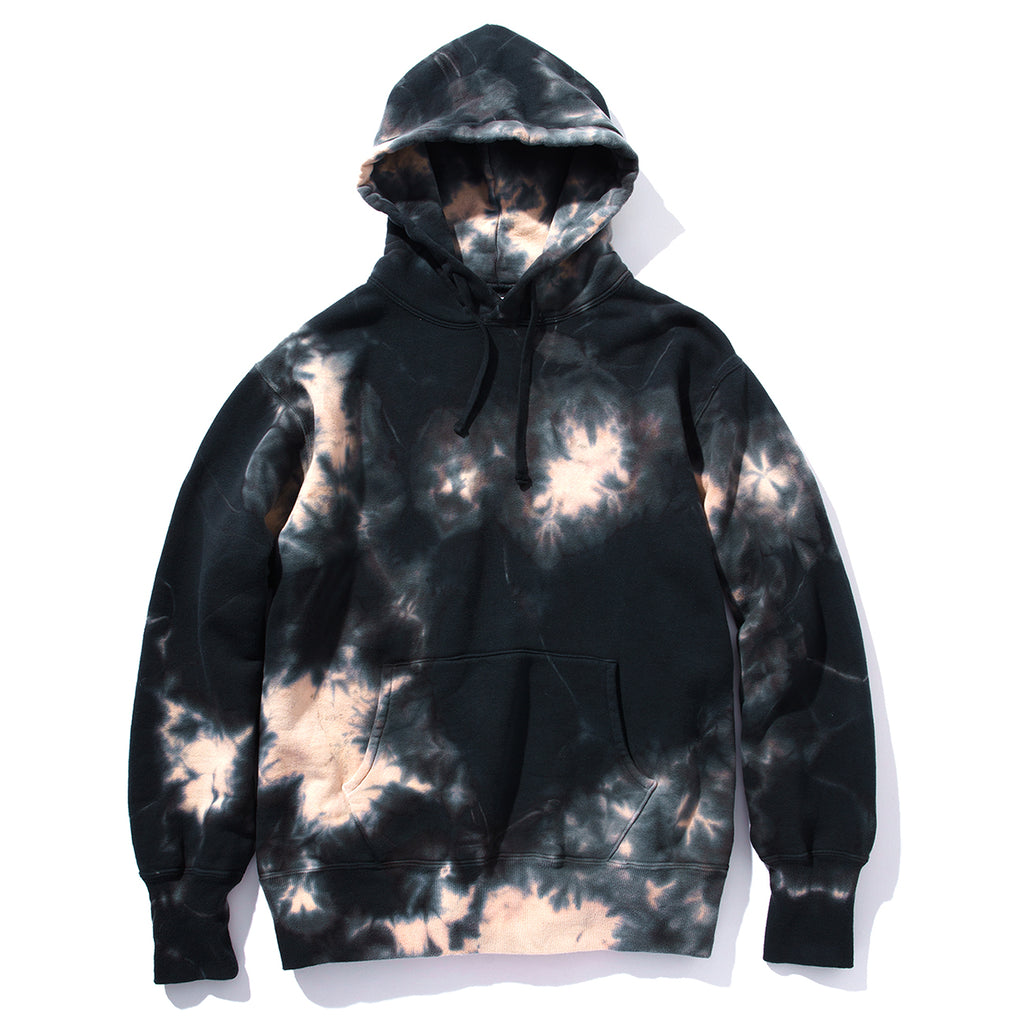 Inspired by DIY Tie-Dye garments from the 1960s and 70s, this pullover hooded sweatshirt has been hand-dyed giving it a casual yet playful finish.