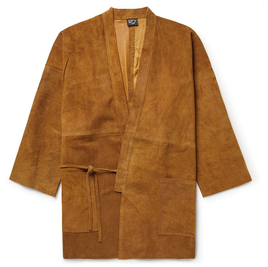 OrSlow honours the design and craftsmanship of traditional Japanese workwear in its collections. This 'Takumi' jacket has a simple kimono-inspired shape that belts with slim ties at the side. It's made from smooth suede that will develop a lived-in patina with wear.