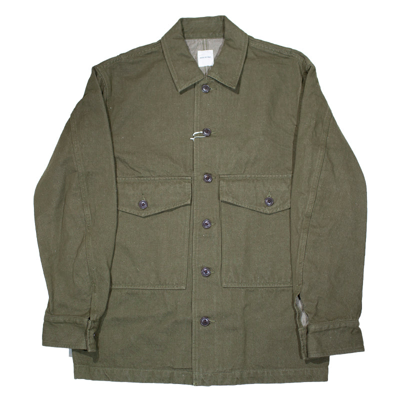 This Jacket from Japan's Sage de Cret is a solid transitional jacket with large patch pockets at waist with both open sides and top entry.